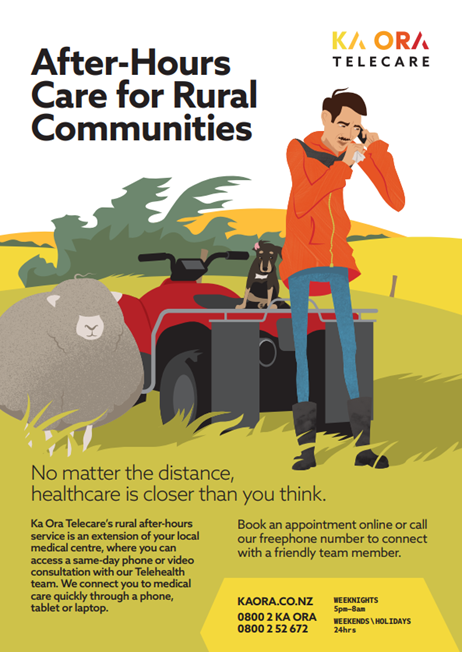 Ka Ora provides virtual telehealth to rural New Zealand patients on Weekdays from 5pm - 8am and 24/7 on weekends and public holidays.